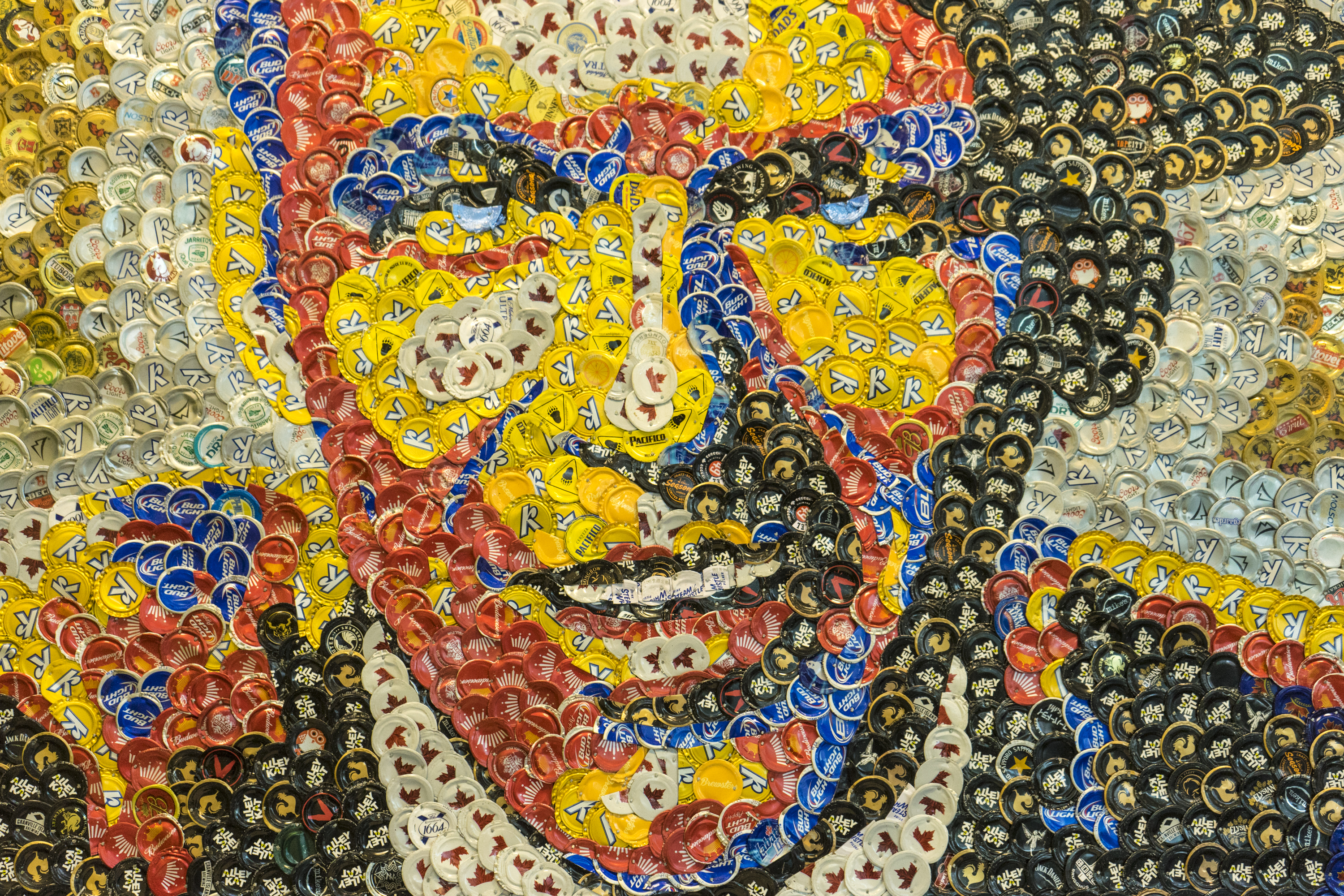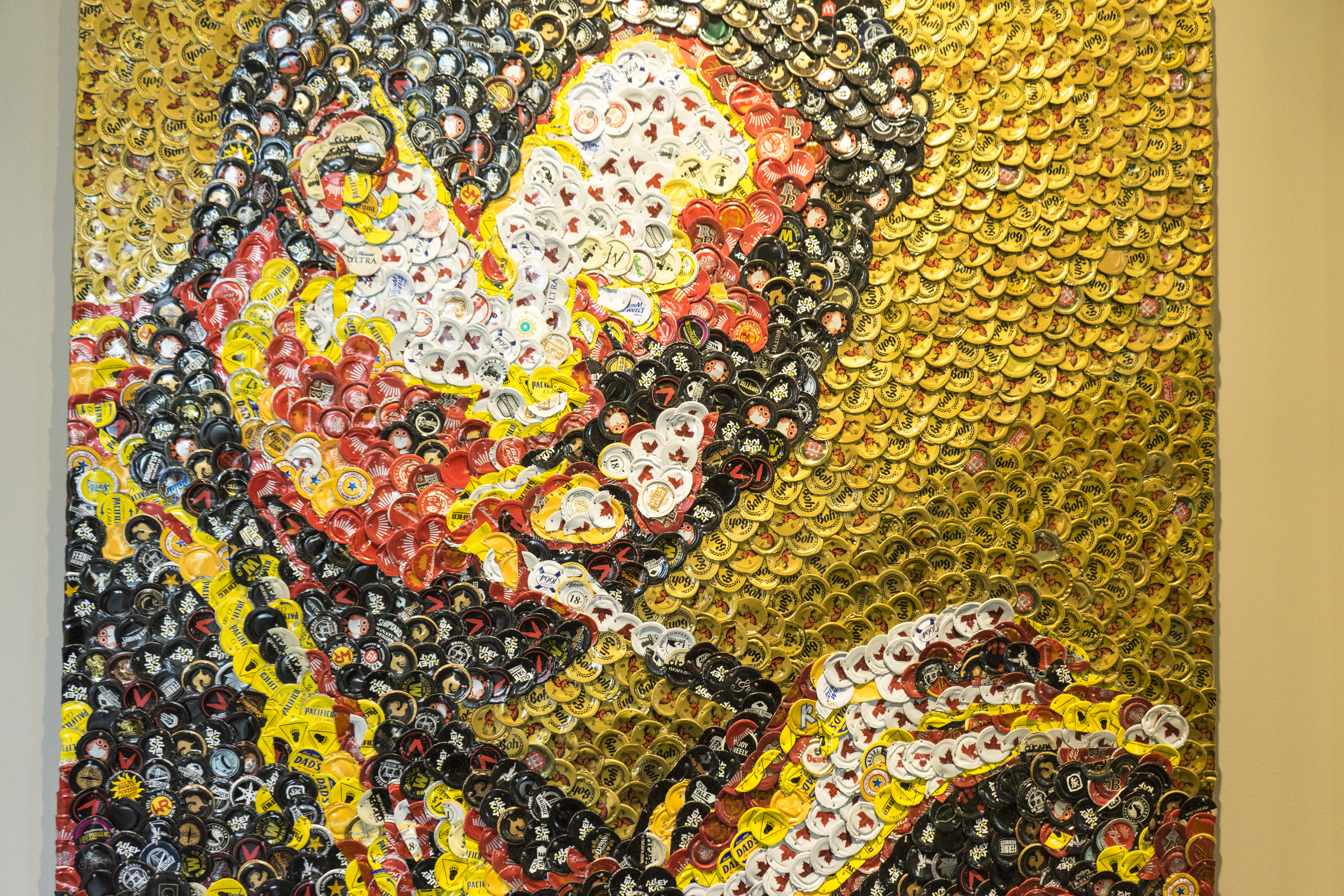 I have a handful of bars saving their caps for me and I gladly accept donations from anyone who has a collection they want to put to good use. I would estimate my cap stash is around the 100,000 mark, but I haven't counted all of them so it may be more. The insane thing about that number of caps I have, is that I'm only collecting from about half of a dozen bars, and I create pieces quite consistently. Meaning there are SO many more caps being thrown out just in Edmonton alone. Imagine how many caps are being tossed on a daily basis globally? To me, that's like throwing out perfectly good paint.